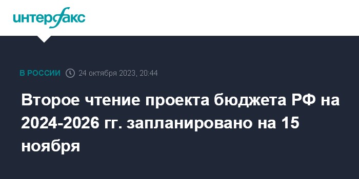 Второе чтение проекта бюджета РФ на 2024-2026 гг. запланировано на 15 ноября