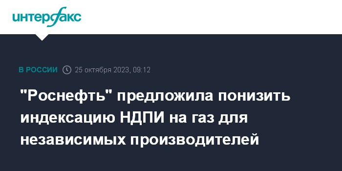 "Роснефть" предложила понизить индексацию НДПИ на газ для независимых производителей