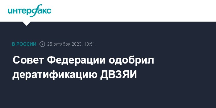 Совет Федерации одобрил дератификацию ДВЗЯИ