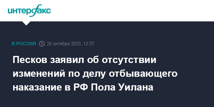 Песков заявил об отсутствии изменений по делу отбывающего наказание в РФ Пола Уилана