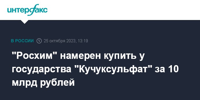"Росхим" намерен купить у государства "Кучуксульфат" за 10 млрд рублей