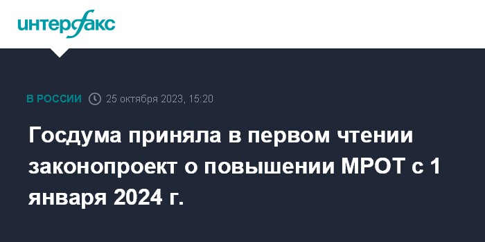 Госдума приняла в первом чтении законопроект о повышении МРОТ с 1 января 2024 г.