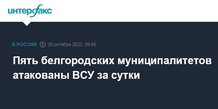 Москва. 26 октября. INTERFAX.RU - Губернатор Белгородской области Вячеслав Гладков сообщил об атаках с украинской стороны за минувшие сутки.