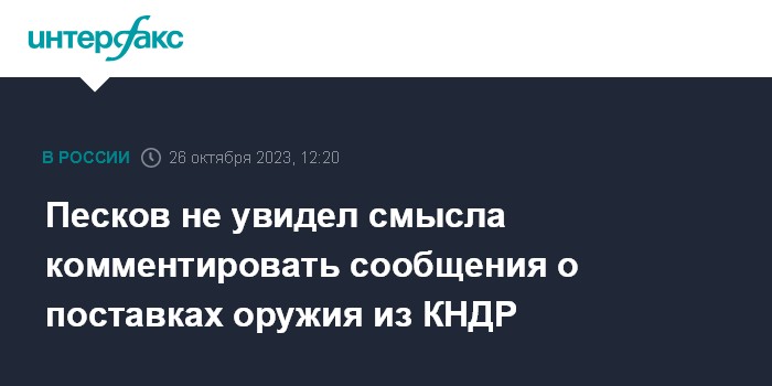 Ранее, 17 октября, Песков также говорил, что сообщения о начале поставок боеприпасов из КНДР в Россию не основаны на доказательствах.
