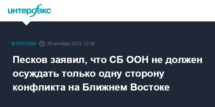 Песков заявил, что СБ ООН не должен осуждать только одну сторону конфликта на Ближнем Востоке