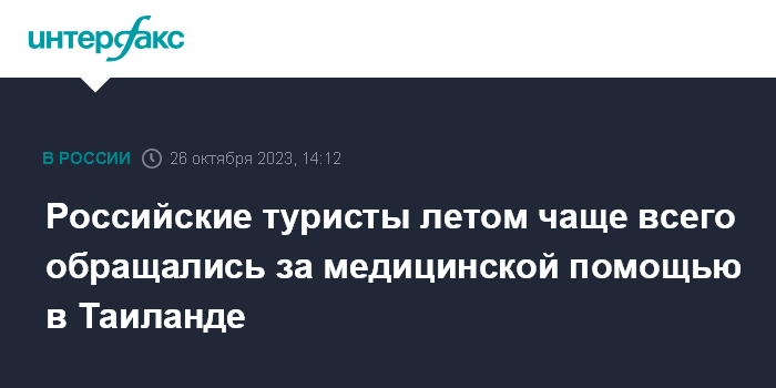 Российские туристы летом чаще всего обращались за медицинской помощью в Таиланде
