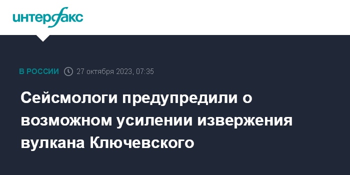 Москва. 27 октября. INTERFAX.RU - Сейсмологи предупреждают о возможном резком усилении извержения вулкана Ключевского на Камчатке с лавовыми и грязевыми потоками, пеплопадами в населенных пунктах, сообщает Камчатский филиал Единой Геофизической службы РАН в пятницу.