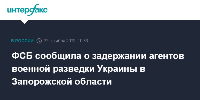 ФСБ сообщила о задержании агентов военной разведки Украины в Запорожской области