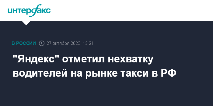 Москва. 27 октября. INTERFAX.RU - Российский рынок такси продолжает испытывать нехватку водителей при росте спроса пользователей, говорится в сообщении "Яндекса".