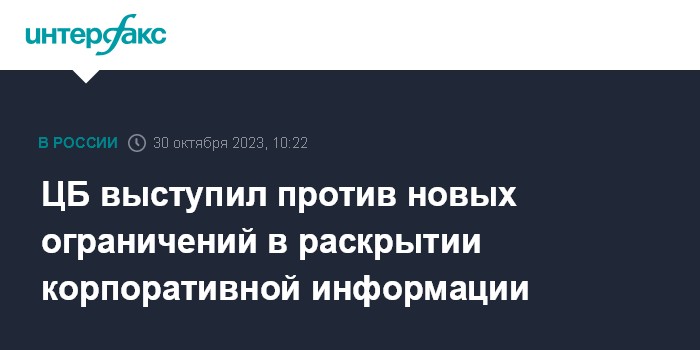 ЦБ выступил против новых ограничений в раскрытии корпоративной информации