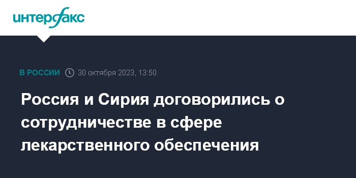 Россия и Сирия договорились о сотрудничестве в сфере лекарственного обеспечения