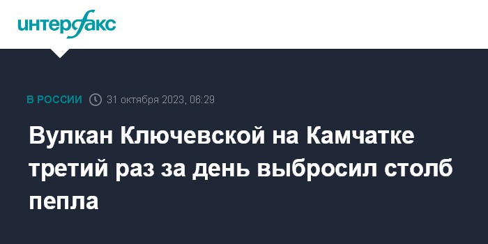 Москва. 31 октября. INTERFAX.RU - Извергающийся на Камчатке вулкан Ключевской третий раз за день выбросил столб пепла, на этот раз он поднялся на высоту до 9,8 км, сообщается на сайте Камчатской группы наблюдения за вулканическими извержениями (KVERT) Института вулканологии и сейсмологии (ИВиС) Дальневосточного отделения РАН.
