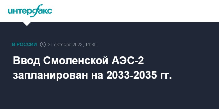 Ввод Смоленской АЭС-2 запланирован на 2033-2035 гг.
