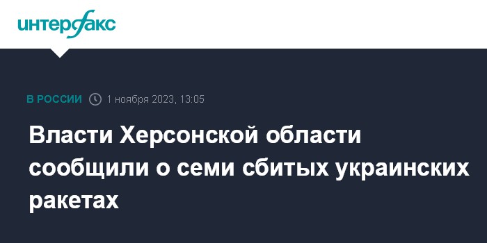 Власти Херсонской области сообщили о семи сбитых украинских ракетах