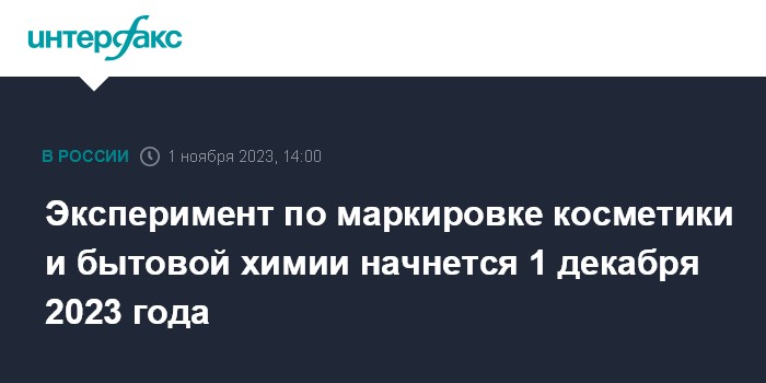 Москва. 1 ноября. INTERFAX.RU - Эксперимент по маркировке парфюмерно-косметических товаров и бытовой химии запланирован в России с 1 декабря 2023 года по 28 февраля 2025 года, сообщила пресс-служба Минпромторга. Проект такого постановления правительства размещен на портале regulation.gov.ru.