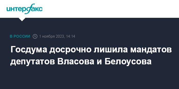 Госдума досрочно лишила мандатов депутатов Власова и Белоусова