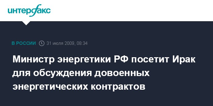 Министр энергетики РФ посетит Ирак для обсуждения довоенных энергетических контрактов