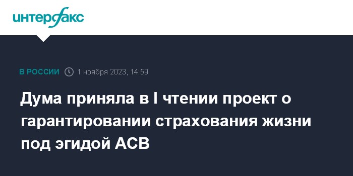 Дума приняла в I чтении проект о гарантировании страхования жизни под эгидой АСВ