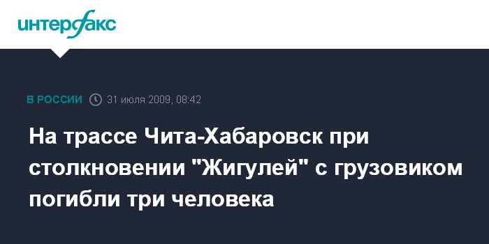 Москва. 31 июля. INTERFAX.RU - На федеральной трассе Чита-Хабаровск в районе станции Могоча в результате ДТП погибли три человека, еще один госпитализирован.