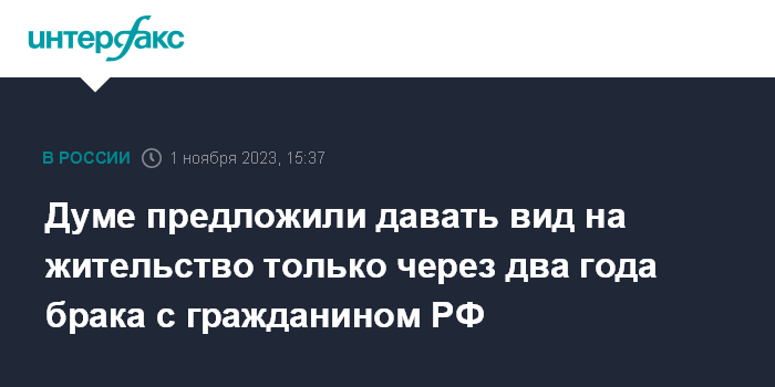 Москва. 1 ноября. INTERFAX.RU - В Госдуму внесен проект закона, направленный на борьбу с фиктивными браками для получения вида на жительство в РФ по упрощённой схеме.