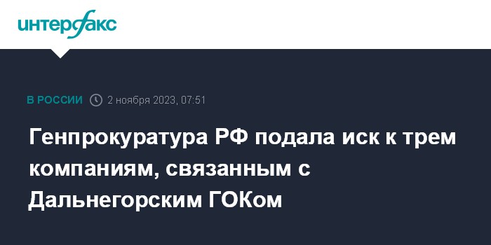 Генпрокуратура РФ подала иск к трем компаниям, связанным с Дальнегорским ГОКом