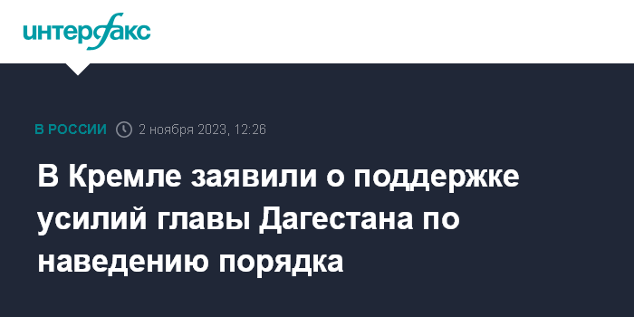 Москва. 2 ноября. INTERFAX.RU - В Кремле поддерживают позицию главы Дагестана Сергея Меликова относительно расследования беспорядков в аэропорту Махачкалы, заявил в четверг пресс-секретарь президента РФ Дмитрий Песков.