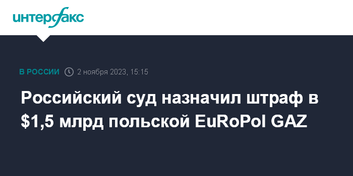 Российский суд назначил штраф в $1,5 млрд польской EuRoPol GAZ