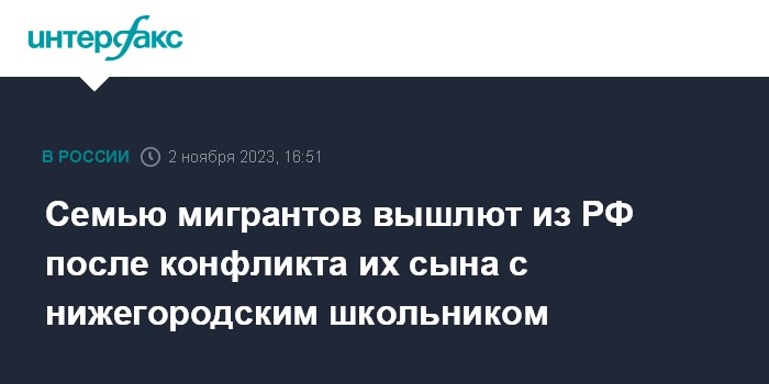 Семью мигрантов вышлют из РФ после конфликта их сына с нижегородским школьником