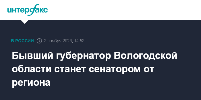 Бывший губернатор Вологодской области станет сенатором от региона