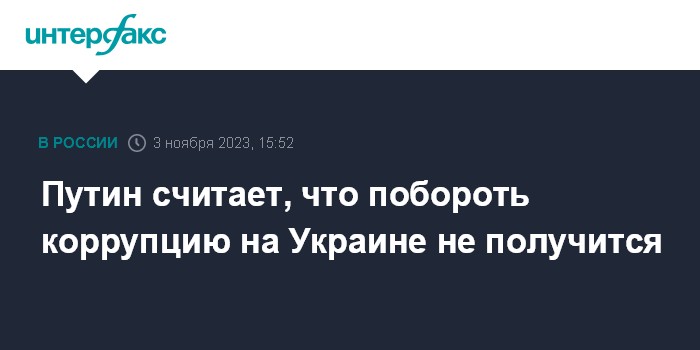 Москва. 3 ноября. INTERFAX.RU - США не удастся побороть коррупцию на Украине сменой элит, заявил президент РФ Владимир Путин.