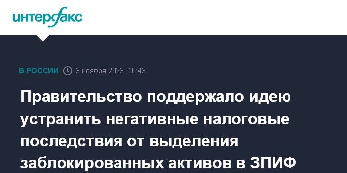 Правительство поддержало идею устранить негативные налоговые последствия от выделения заблокированных активов в ЗПИФ