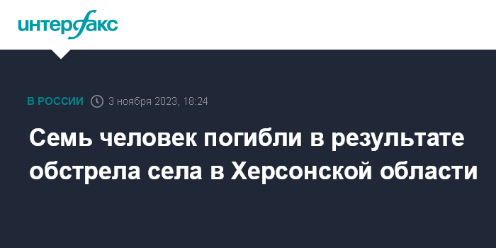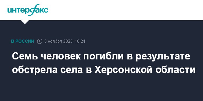 Москва. 3 ноября. INTERFAX.RU - В результате ракетного удара по социальным объектам в селе Чаплинка в Херсонской области, предварительно погибли семь человек, сообщил сенатор от региона Константин Басюк.
