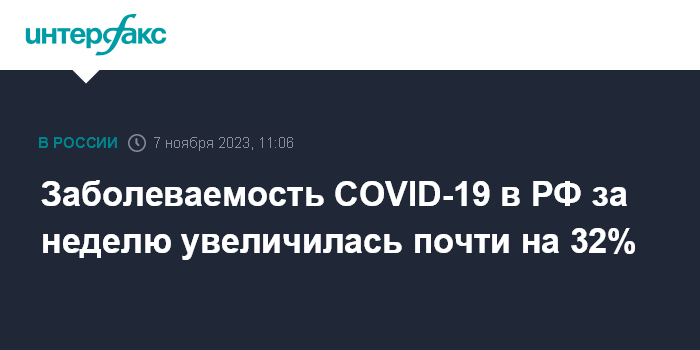 Заболеваемость COVID-19 в РФ за неделю увеличилась почти на 32%