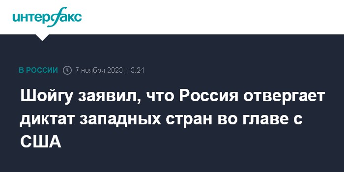 Шойгу заявил, что Россия отвергает диктат западных стран во главе с США