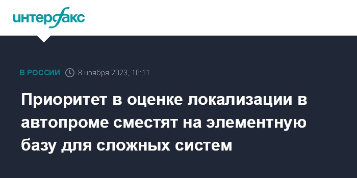 Москва. 8 ноября. INTERFAX.RU - Минпромторг подготовил изменение в систему балльной оценки локализации в российском автопроме с целью сместить приоритет в оценке "российскости" отечественных автомобилей с обработки, сборки, установки сложных систем в пользу локализации необходимой для них элементной базы.