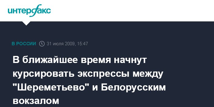 В ближайшее время начнут курсировать экспрессы между "Шереметьево" и Белорусским вокзалом
