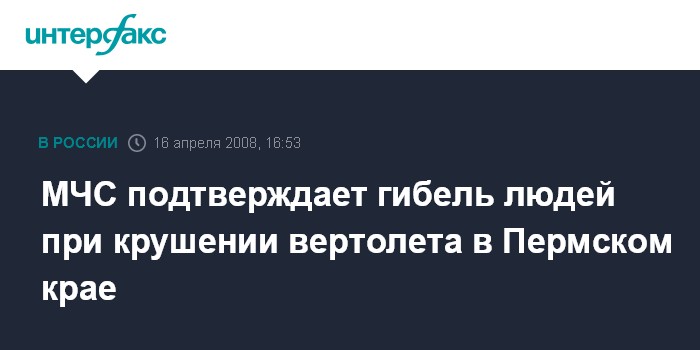 МЧС подтверждает гибель людей при крушении вертолета в Пермском крае