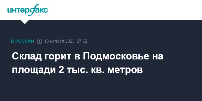 "Пожар произошел в складском помещении по адресу: г.о. Ленинский, ул. Восточная, вл.16, стр.1. Пожар распространился на площади 2 тыс. кв. метров", - говорится в сообщении.