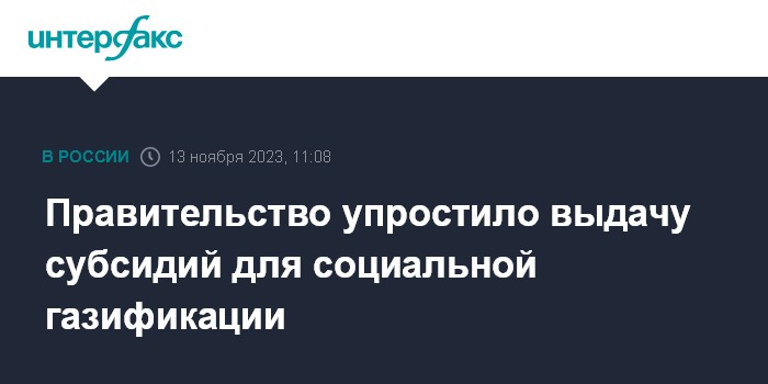 Москва. 13 ноября. INTERFAX.RU - Правительство упростило получение господдержки для льготников в рамках социальной газификации, сообщает сайт кабинета министров после совещания премьер-министра Михаила Мишустина с вице-премьерами.