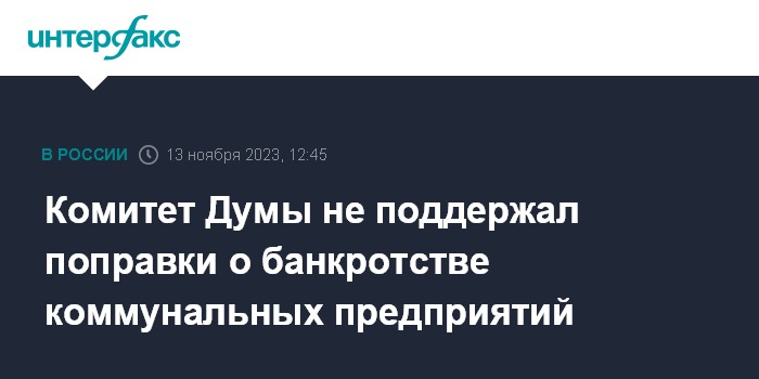 Москва. 13 ноября. INTERFAX.RU - Комитет Госдумы по вопросам собственности, земельным и имущественным отношениям не поддержал законопроект об ужесточении критериев для возбуждения дел о банкротстве управляющих многоквартирными домами и ресурсоснабжающих организаций.