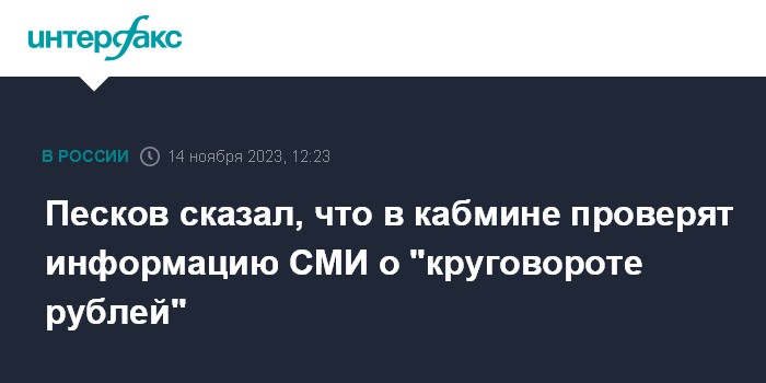 Песков сказал, что в кабмине проверят информацию СМИ о "круговороте рублей"