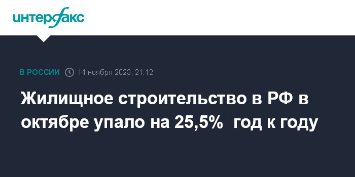 Жилищное строительство в РФ в октябре упало на 25,5% год к году