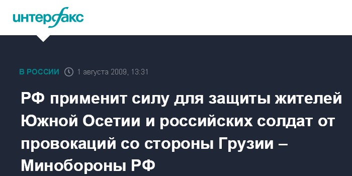 РФ применит силу для защиты жителей Южной Осетии и российских солдат от провокаций со стороны Грузии – Минобороны РФ