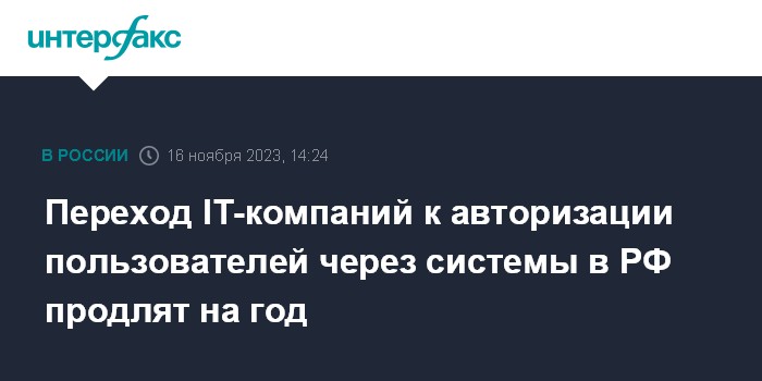 Переход IT-компаний к авторизации пользователей через системы в РФ продлят на год