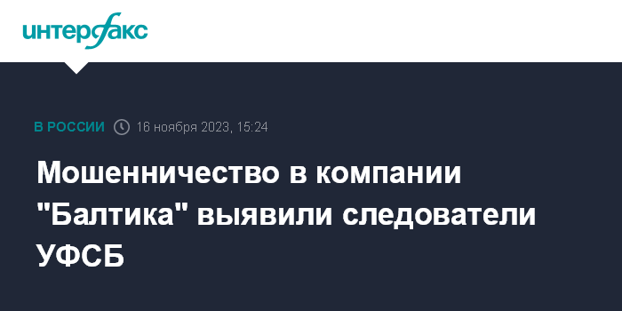 Мошенничество в компании "Балтика" выявили следователи УФСБ