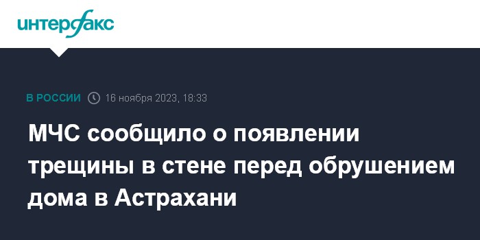 МЧС сообщило о появлении трещины в стене перед обрушением дома в Астрахани