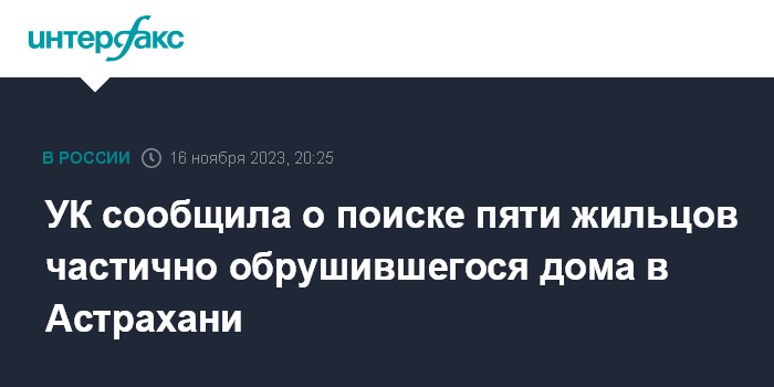 Москва. 16 ноября. INTERFAX.RU - Местонахождение пяти человек до сих пор не установлено после обрушения части жилой пятиэтажки в Астрахани, сообщили "Интерфаксу" в управляющей компании.