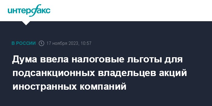 "Это продолжение работы с бизнесом по мерам поддержки. Наши компании, которые имеют за рубежом деятельность, хотят вывести оттуда активы в РФ, и выяснилось, что при наличии запретов на финансовые операции, операции с ценными бумагами, они не могут ни дивиденды выплатить, ни продать эти акции. Поэтому единственным фактическим вариантом является уменьшение уставного капитала тех зарубежных организаций. Но при уменьшении уставного капитала наше национальное законодательство говорит о том, что они будут обязаны уплатить налог с курсовой разницы, вот этой номинальной стоимости акций. Предлагается вот ту курсовую разницу (налогом на прибыль - ИФ) не облагать", - поясняла ранее суть поправки первый зампред комитета по бюджету Ольга Ануфриева.