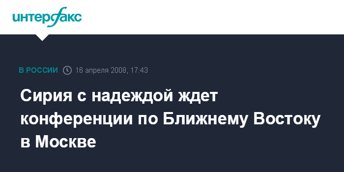 Москва. 16 апреля. INTERFAX.RU - Сирия рассчитывает, что международная конференция по Ближнему Востоку состоится в Москве в первой половине этого года.