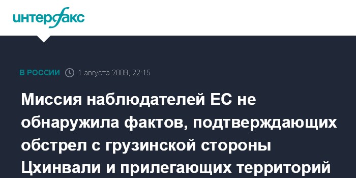 Миссия наблюдателей ЕС не обнаружила фактов, подтверждающих обстрел с грузинской стороны Цхинвали и прилегающих территорий